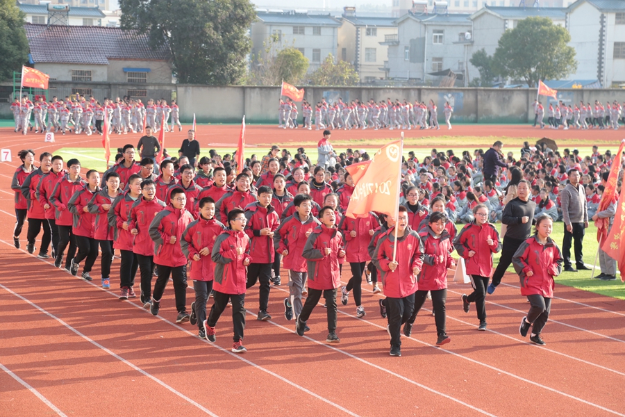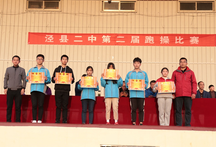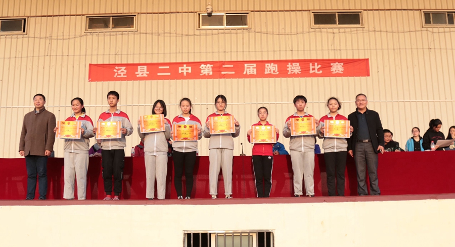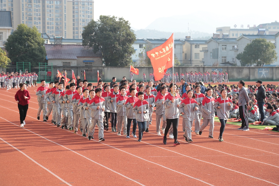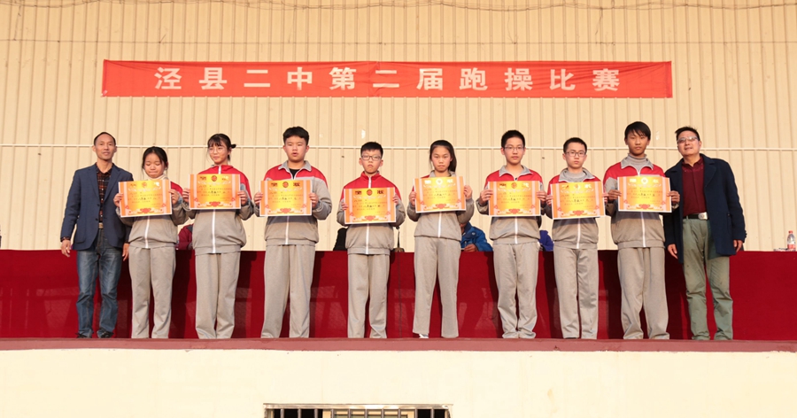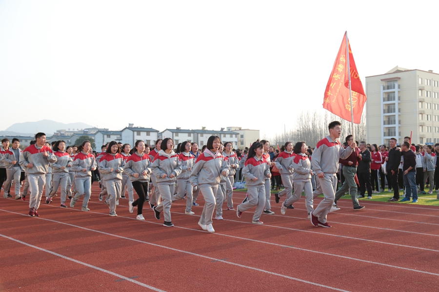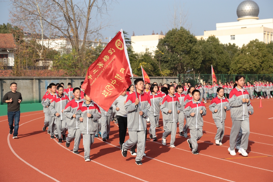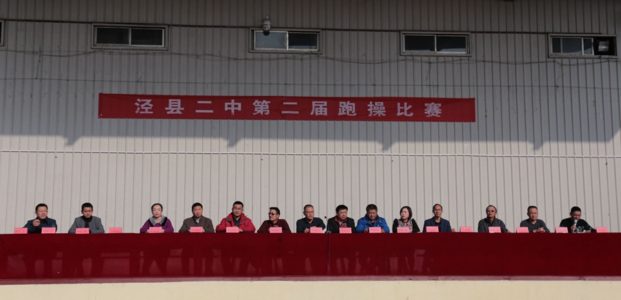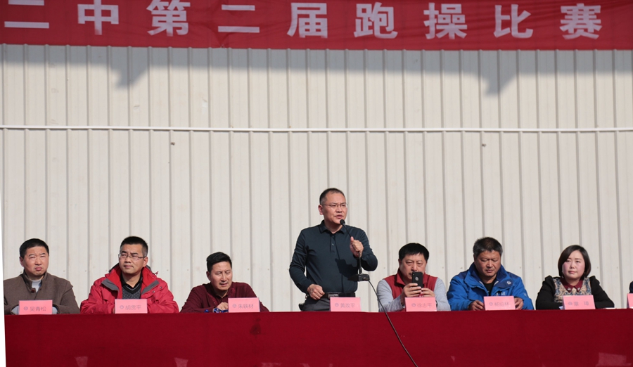 开幕式上,升国旗、唱国歌仪式庄严;章璋副校长大赛致辞热情洋溢,催人奋进。最后,县教体工委委员、校党委书记、校长黄政平隆重宣布:“泾县二中第二届跑操比赛开始!”