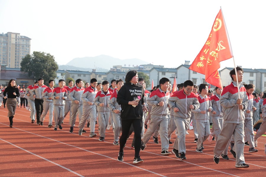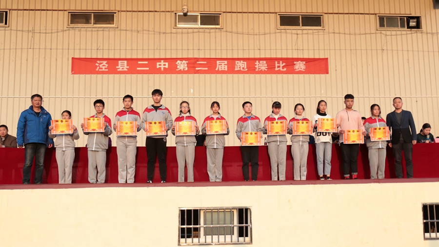 为丰富学生校园生活,展示学生青春风采,增强班级凝聚力,全面检阅课间跑操质量,展现学校体育教学成果与班级管理水平,11月29日下午,全体师生齐聚体育场,隆重举行泾县二中第二届跑操比赛。校领导和各部门负责人及裁判组长在主席台就座,学校初中部、高中部共六个年级55个班级全部组队参加。