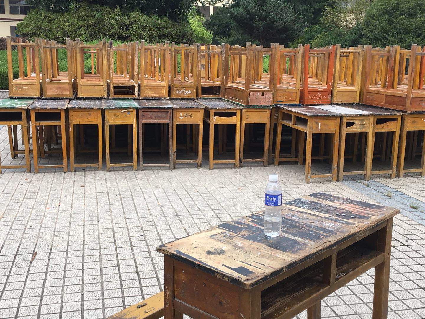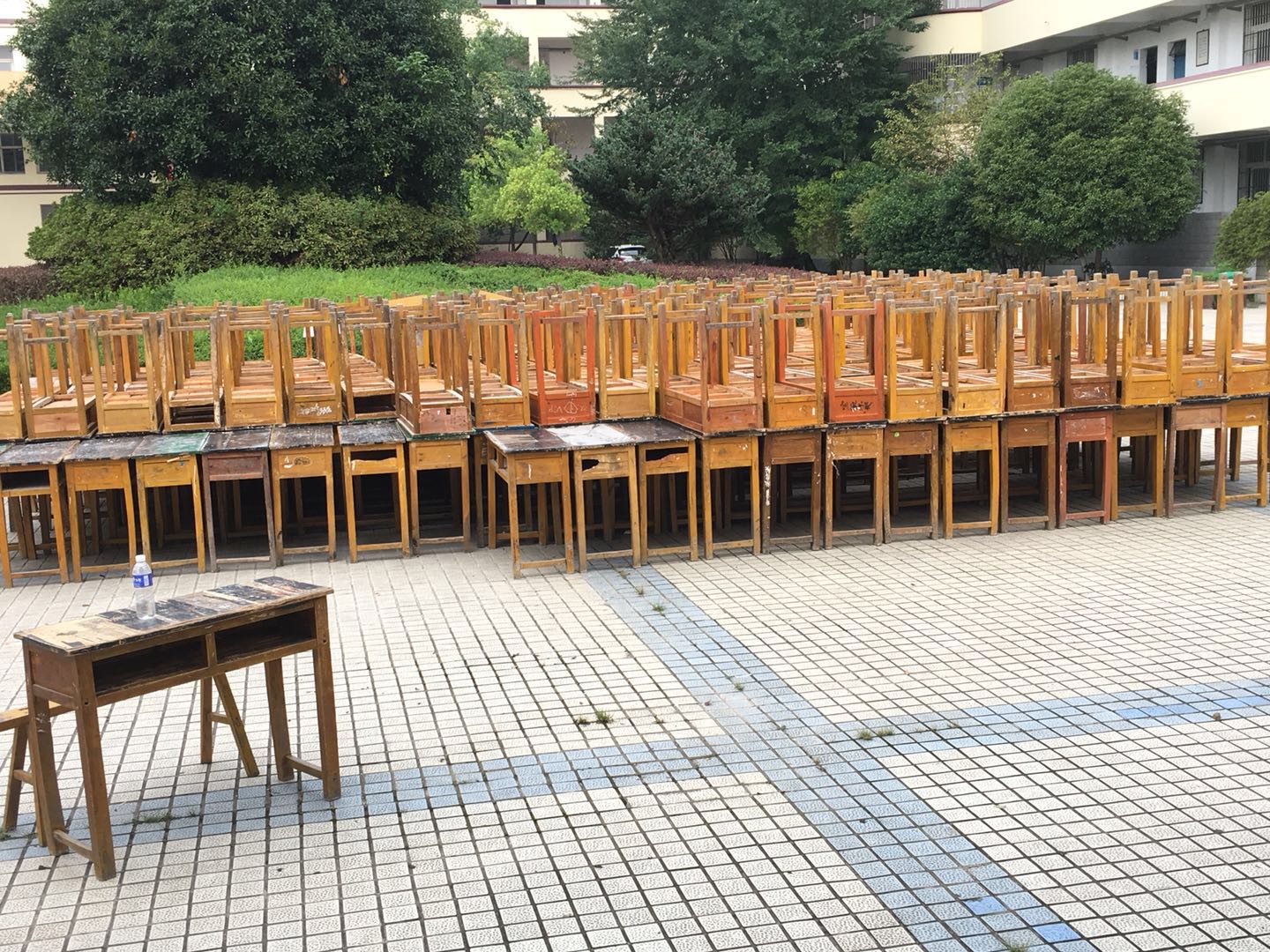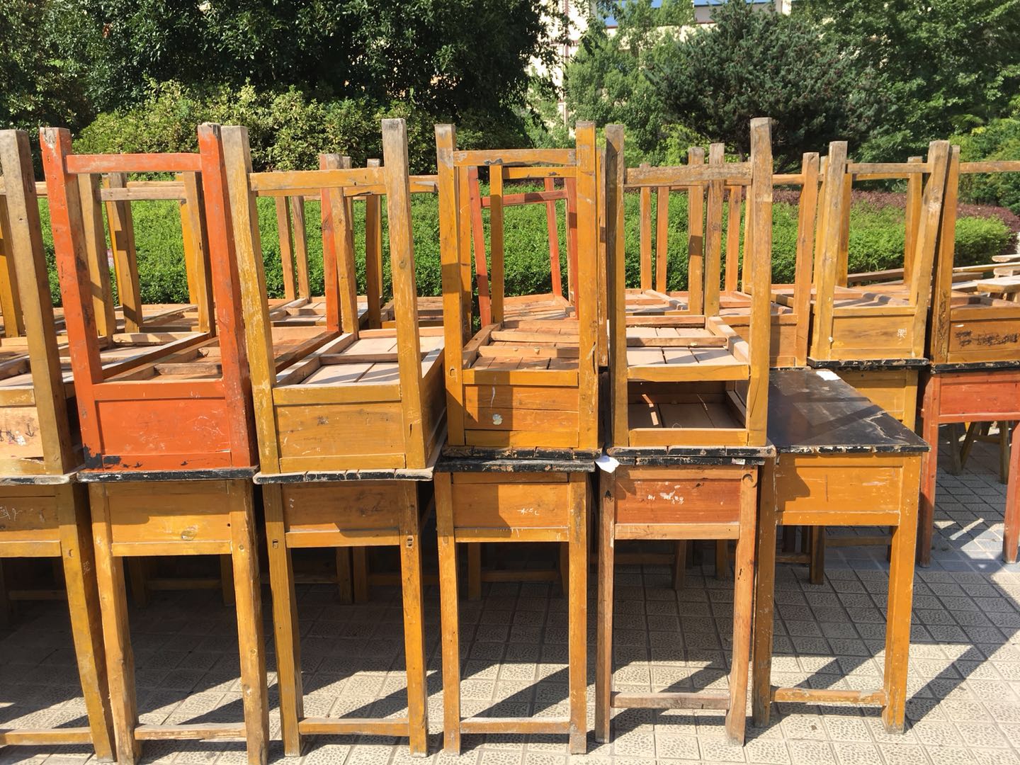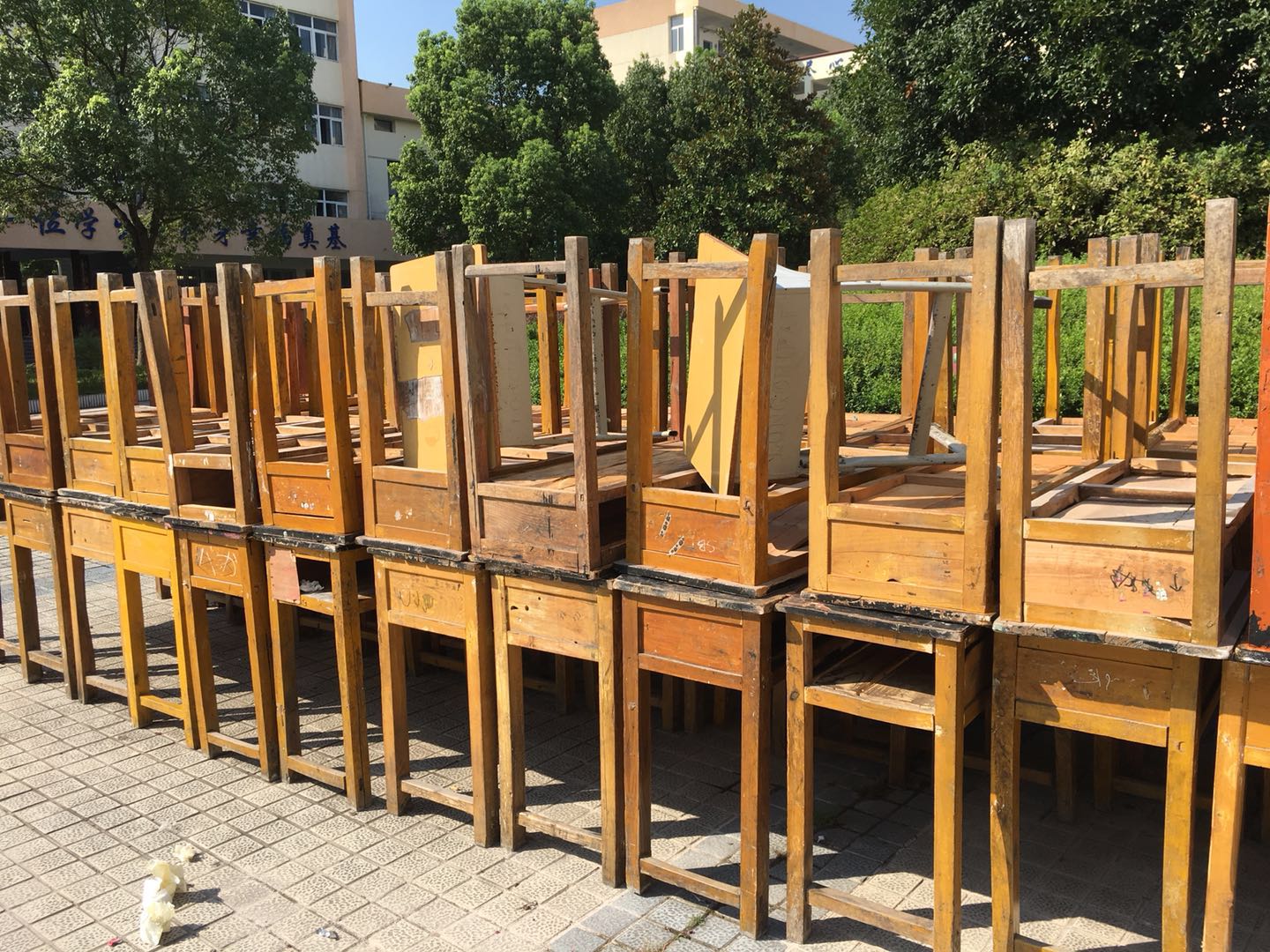 我校于今年秋季开学起将陆续更换新采购的课桌椅,学校决定将原来的1500套双人旧课桌凳进行公开拍卖处置(均有不同程度的损坏),有意者请与我校总务处联系,欢迎来校洽谈。附图如下: