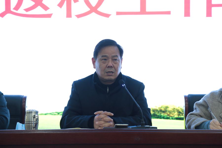 校党委书记、校长徐宗保做总结讲话。徐校长就做好高三学生返校工作提出了四点要求:一是要提高政治站位,迎接教育大考;二是要明确职责要求,掌握操作流程;三是要落实防控措施,留存痕迹备查;四是要调整教学计划,做好线上、线下教学的衔接。