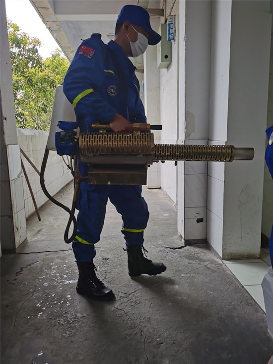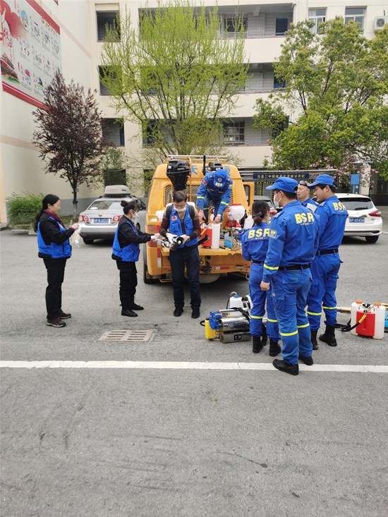 为切实加强新冠肺炎疫情防控,坚决贯彻落实省、市、县教育和卫生部门的指示精神, 泾县二中积极开展爱国卫生大运动,加强对 校园全方位的清扫和消毒。为了让家长放 心、让社会满意,学校还特地邀请到宣城市 蓝天救援队进行专业消毒消杀工作。宣城市 蓝天救援队是一支专业的救援志愿队伍,他 们具有高超的专业技术和精密的设备,是武 汉新冠肺炎疫情中的逆行者,为武汉义务开 展了十五天的城市消毒工作。从武汉战场回 泾结束隔离后,他们又积极投身到无偿为校 园进行消毒工作中。4月3日下午在我校开展 的活动,赢得了社会各界的广泛赞誉。
