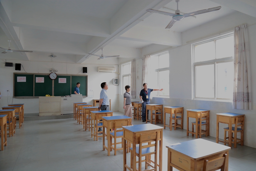 会后,全体监考教师对各考场进行了精心布置,相关领导对考场进行了严格验收。