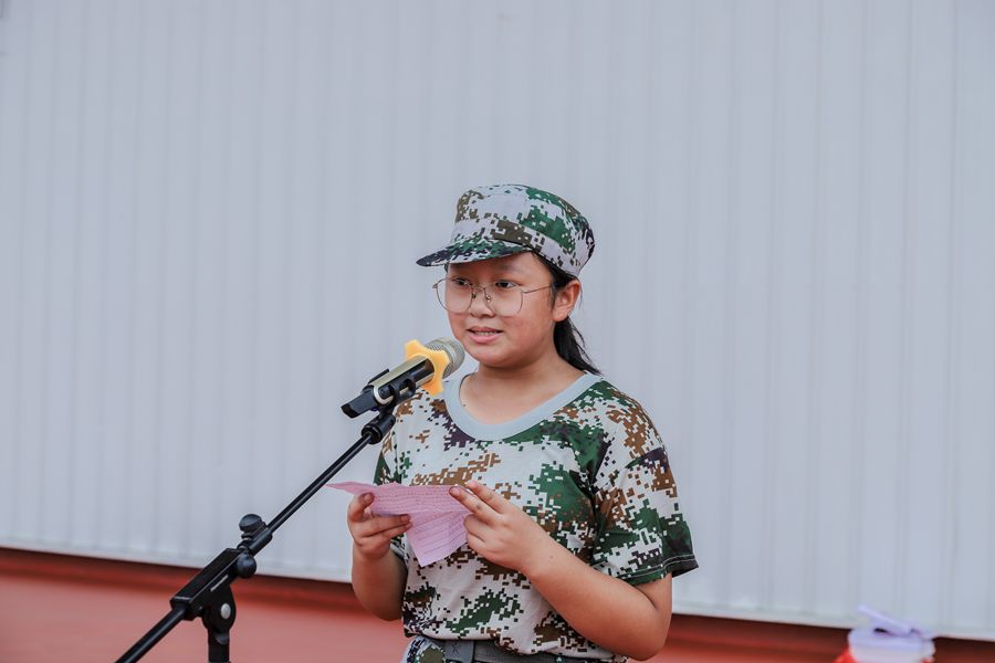 军训学员代表七(4)班王天羽同学和军训教官代表分别作了军训总结发言。