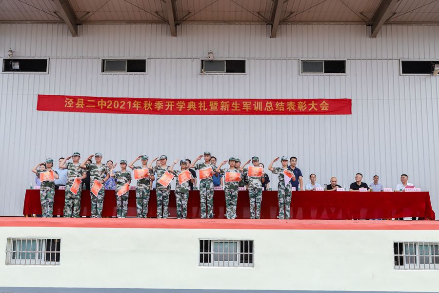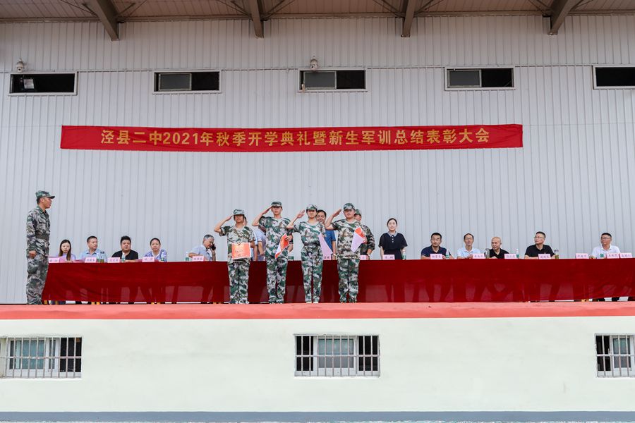 最后校党委书记、校长徐宗保宣布:泾县二中2021级新生军训圆满结束。