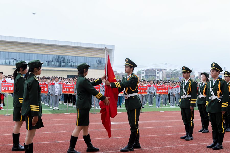 开学典礼在新老国旗护卫班交接仪式后,庄严的“升国旗 唱国歌”中拉开序幕。