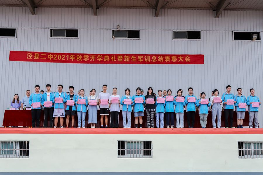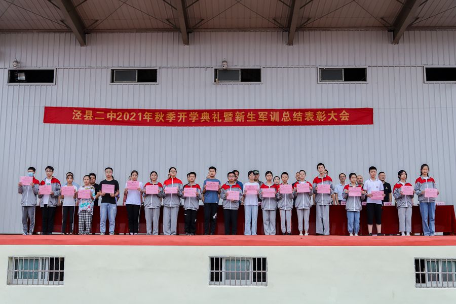 开学典礼后举行了泾县第二中学2021级新生军训总结表彰大会。