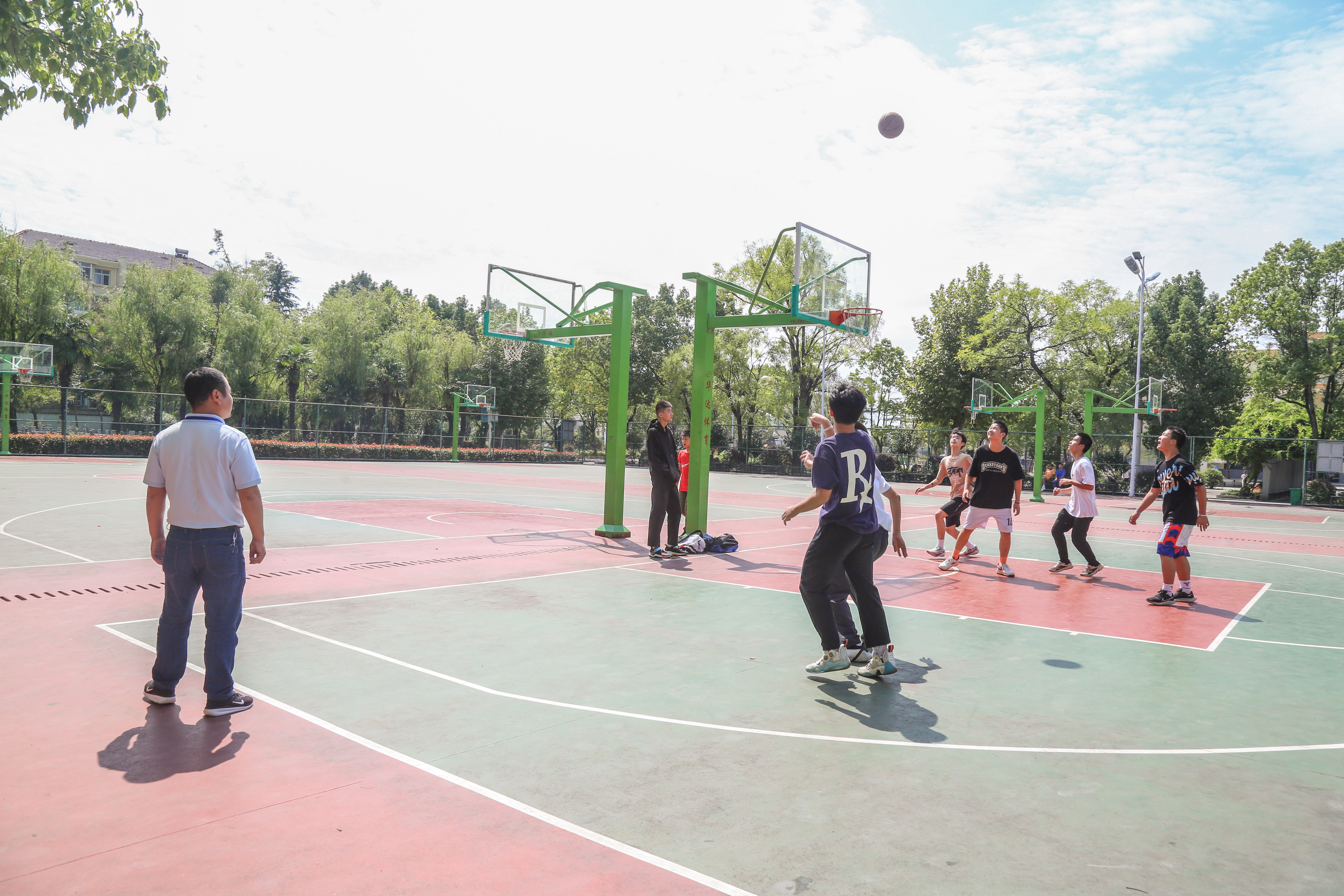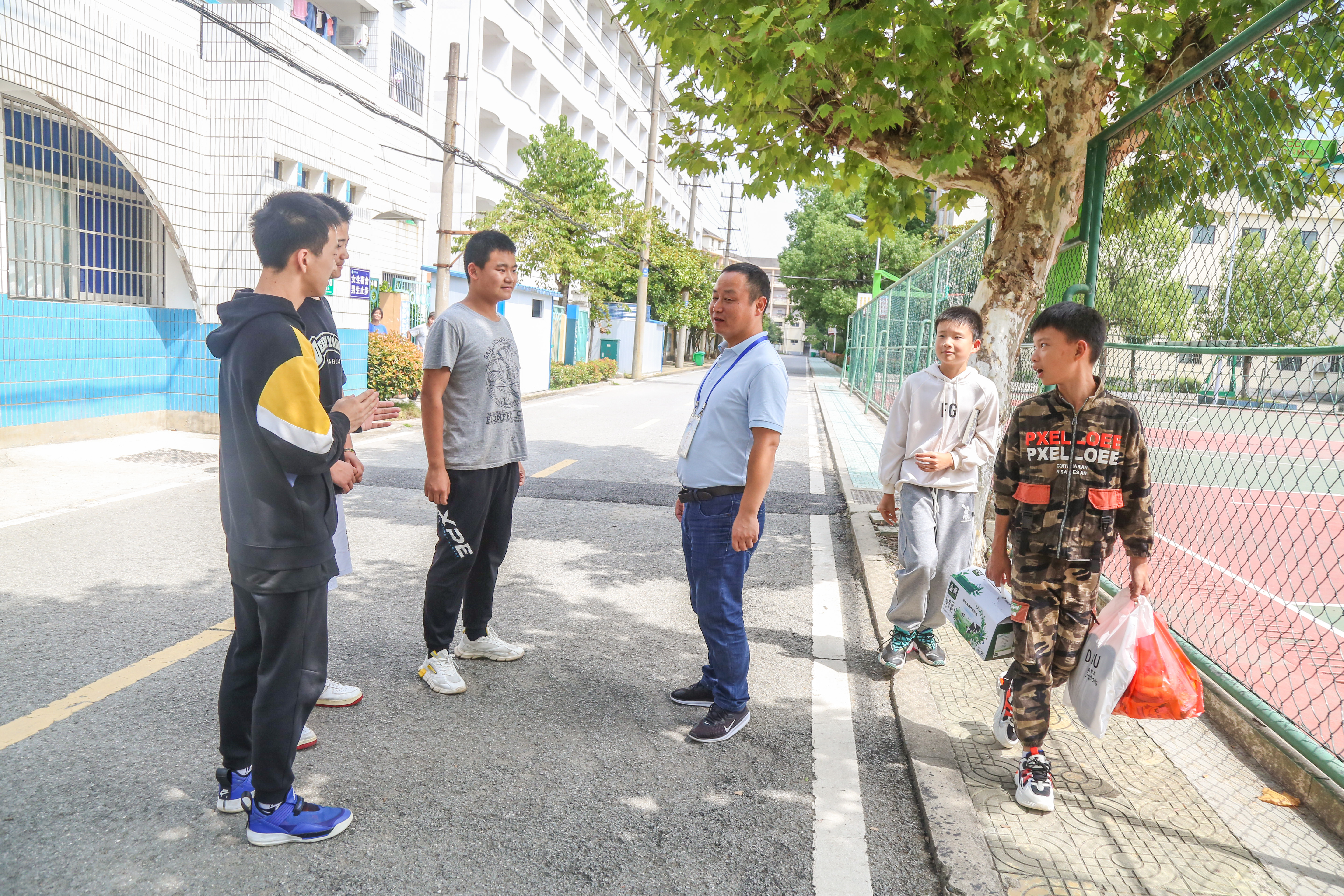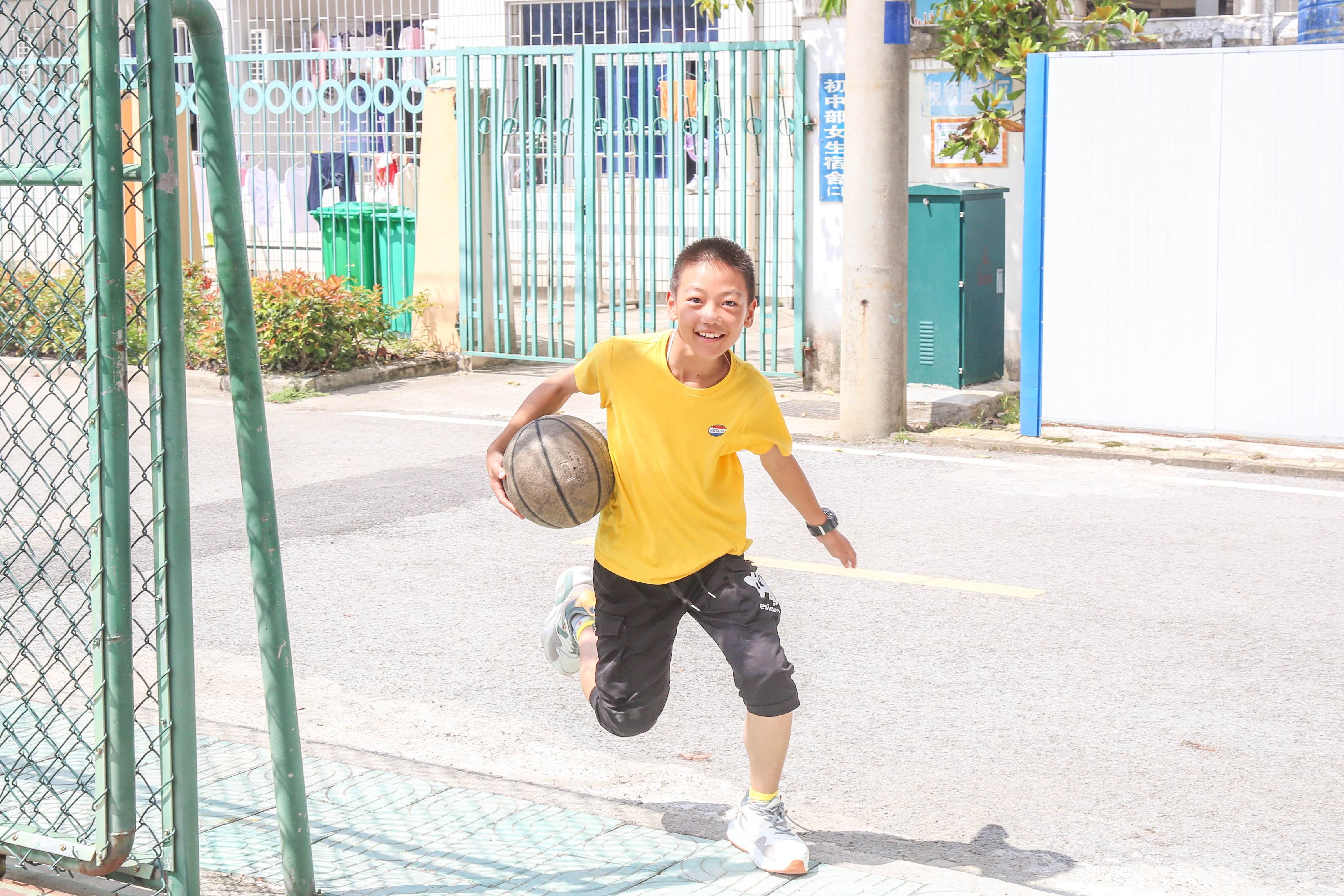 在服务中心吃完午饭,女同学们会一起散步消食,男同学们大多会去打篮球,看班老师就在附近,随时了解掌握学生动态