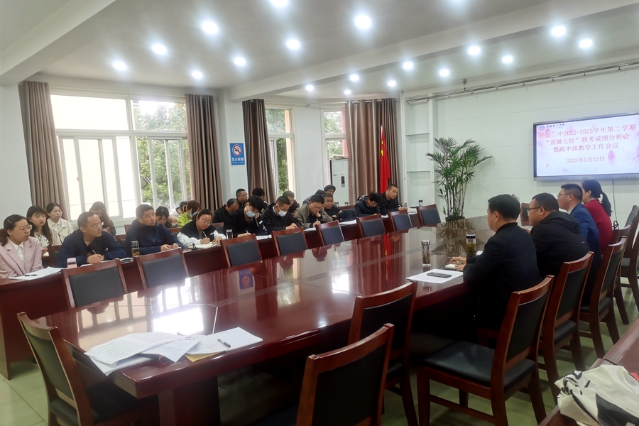 5月22日下午,我校在行政楼第一会议室召开2022-2023学年第二学期“宣城七校”联考成绩分析暨高中部教学工作会议,校领导、高一、高二年级全体任课教师参加会议。会议由副校长王松华主持。