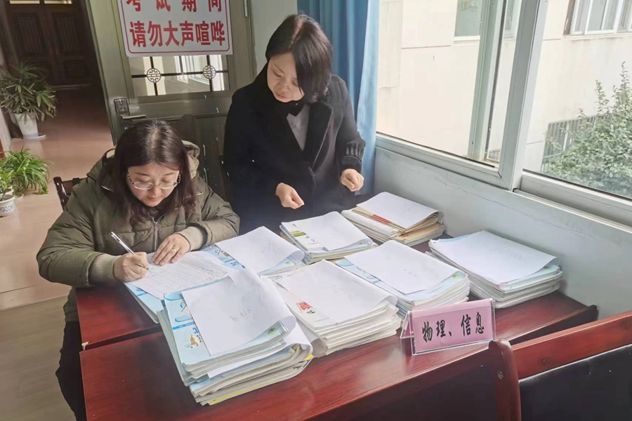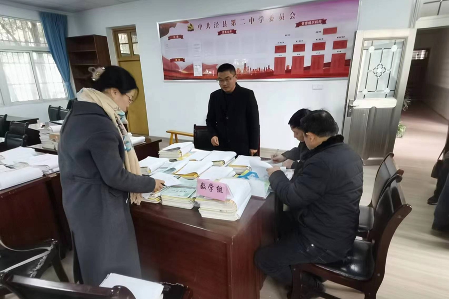校党委副书记、校长卫建平等校领导、相关处室、教研组长和年级组长对全体教师的教案、作业批改情况等进行了全面细致的检查、记录。