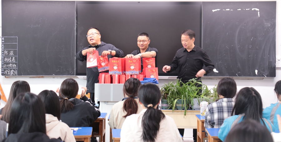 校党委副书记、校长卫建平、副校长王松华、郭世东等校领导走进高三每一个教室,为高三学子送上了寓意高考“高中”的糕点和粽子。卫校长代表学校表达了对高三学子们的美好祝福,祝愿同学们以最好的状态迎战高考,“粽”横考场,一举“糕”中。