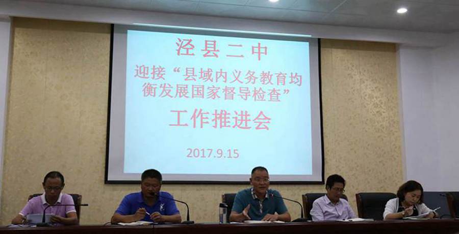9月15日下午,我校在阶梯教室召开迎接“县域内义务教育均衡发展国家督导检查”工作推进会,全体教师参会。副校长朱轶材主持会议,校长黄政平做重要讲话。