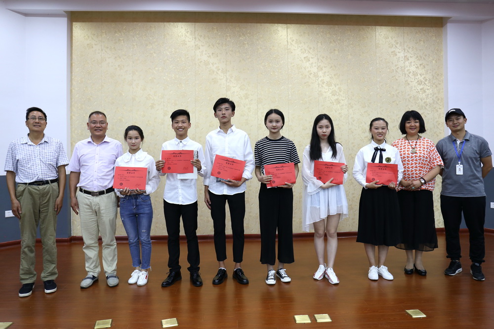 县委教体工委委员、校党委书记、校长黄政平,副校长朱轶材、杨绍林,体艺处主任王松华,教科室主任吴青松;加美培训中心负责人朱欢喜、杜逸文;高一高二年级部分班主任与同学们一起观看了诵读比赛,并和评委一起为获奖同学颁发了奖状和奖品。副校长章璋,宣艺博雅艺术学校校长王东林、教学总监汪明明,教导处主任吴文君、八年级年级组长邓劲松、资助中心主任助理向存珍六位老师组成评委会,对参赛节目从思想内容、朗诵能力、形象仪表和综合表现力等四个方面进行量化评分,最终评出一等奖4个、二等奖7个、三等奖10个。