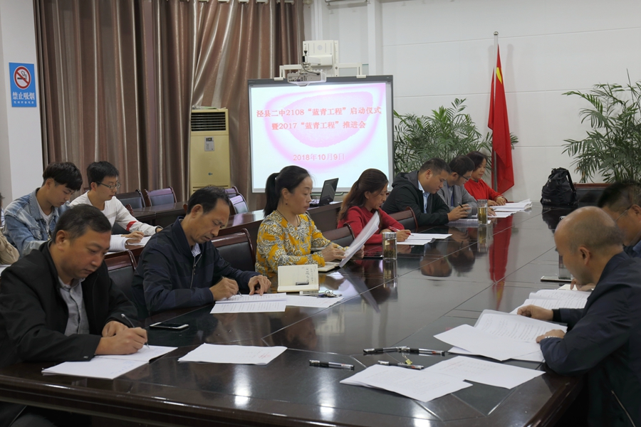 10月9日下午,我校在育才楼第一会议室隆重举行2018年“蓝青工程”启动仪式暨2017年“蓝青工程”推进会。县委教体工委委员、校党委书记、校长黄政平到会讲话,副校长章璋、教导处主任吴文君、体艺处主任王松华、政教处主任徐维及2017、2018“蓝青工程”指导教师、青年教师参会。仪式由教科室主任吴青松主持。
