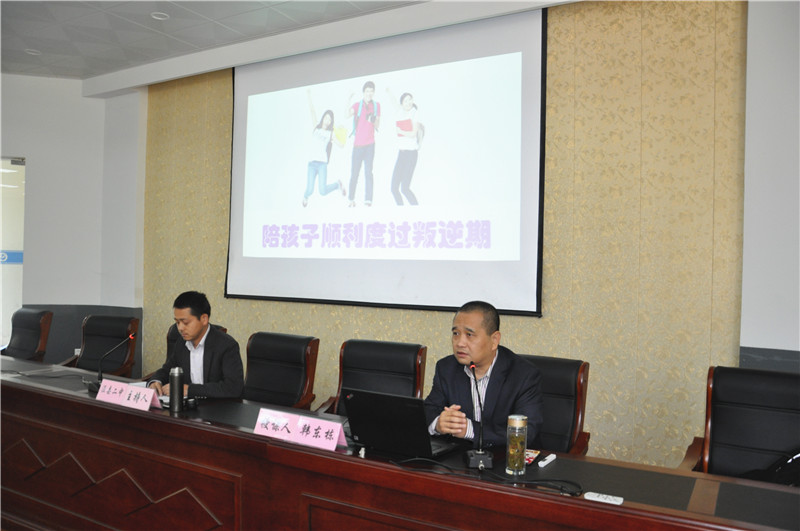 10月13日上午,我校家长学校在阶梯教室召开了《陪孩子顺利度过叛逆期》专题教育知识讲座,近200名学生家长积极报名参会聆听。本次专题教育知识讲座由美国正面管教协会注册家长讲师、家庭教育高级指导师、安徽省网上家长学校特约讲师韩东栋主讲。