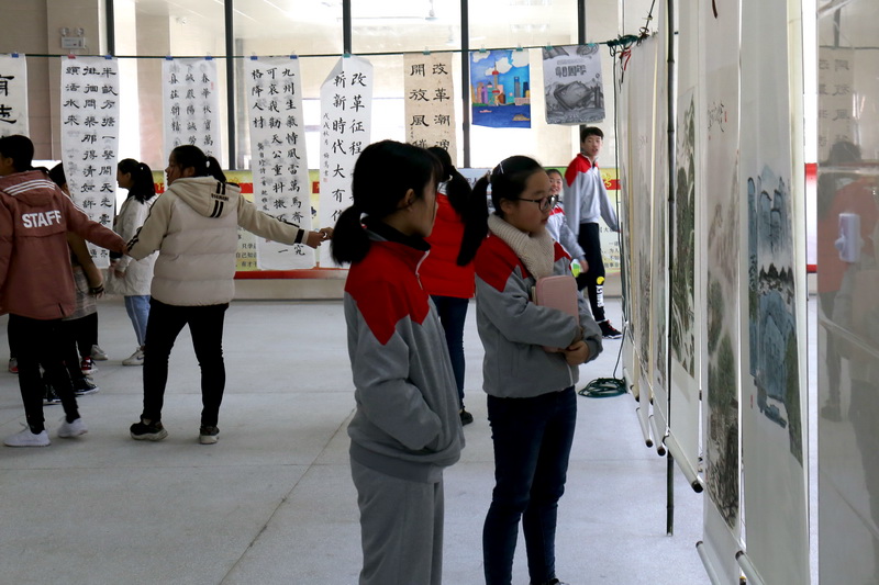 本次书画展既是我校体艺特色办学成果的一次展示,也是一次交流和检阅。在此还要感谢二中书画社全体成员积极响应和大力支持。(摄影:郭建华)
