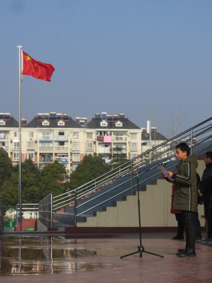 升旗仪式后,七(6)班王之嘉同学以“宝剑锋从磨砺出,梅花香自苦寒来”为主题进行国旗下讲话。