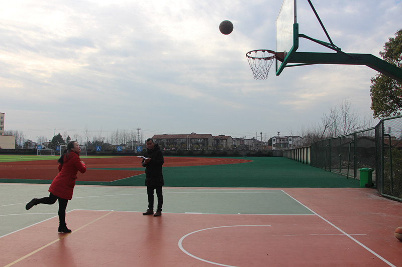 本次趣味运动会比赛项目分为集体项目和个人项目两大类,集体项目“和谐共进”以教研组为单位,每个教研组选派7人参加,用布袋把相互间的腿系在一起,全程距离25米,以用时最短者获胜;个人项目分为定点投篮、掷飞镖、托乒乓球走。定点投篮以投进球多且用时短者依次取前八名;掷飞镖按中靶多者且用时短者依次取前八名;托乒乓球走是将乒乓球置于球拍上托球向前跑,往返距离20米,以用时少者依次取前八名。