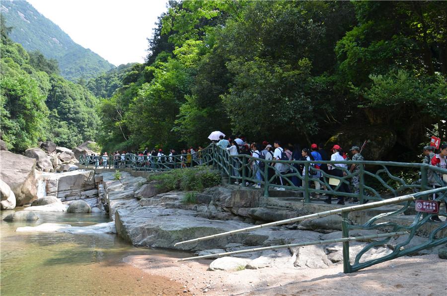 第二站带学生走进青山绿水“芙蓉谷”。芙蓉谷位于黄山北大门。芙蓉谷距城区10公里,它是黄山北麓一道神秘的最近12个月中,也是世界名山黄山的主要景观之一。谷中群峰嵯峨,怪石罗列,原始森林茂密,其中众多形态各异的池潭碧如翡翠,波光闪烁,斑斓纷呈,令学生们心旷神怡,流连忘返。走进大自然行进在青山绿水之间,学生们释放压力,大家相互帮扶,相互交流沟通。全程步行大大提高了我校学生艰苦朴素、吃苦耐劳的品质,也更加促进了班级团队的凝聚力。