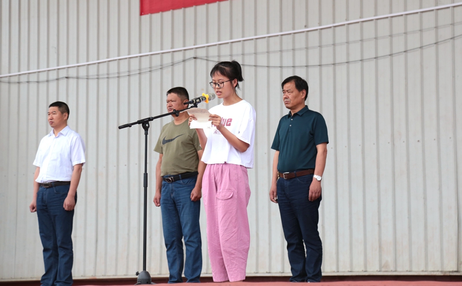 2019年6月17日,全校师生在运动场举行升旗仪式。