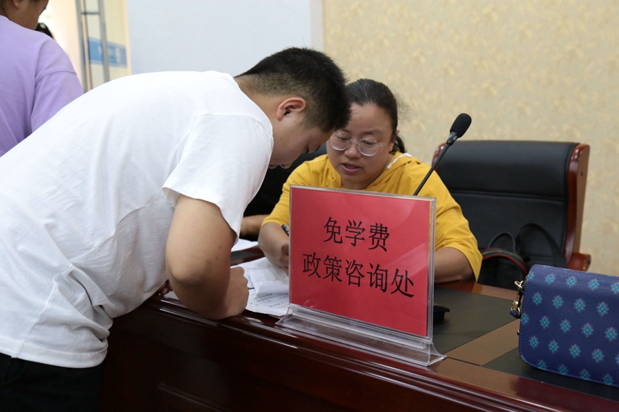 为确保新生报到工作顺利进行,学校高度重视,召开高一新生报名工作专项会议,要求各相关部门提前谋划,采取相应的措施,确保报名工作各项环节安全有序,高效快捷。报名现场,教导处在前期发放录取通知书同时,印发给新生相关流程说明及信息登记表,提高了现场报名的工作效率;总务处人员在报名现场办公,方便学生及时高效完成缴费流程;资助办人员也在现场与建档立卡贫困户进行对接和政策宣传,确保贫困学生享受到减免学费等资助政策。报名工作人员对学生和家长提出的各种问题进行耐心细致的解答,保证了新生报到工作的井然有序。