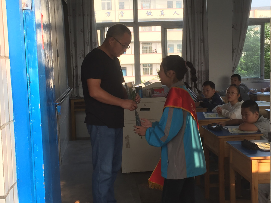 9月10日上午7:10分,参与志愿活动的同学们分别到达奋进楼、腾飞楼、逸夫楼及行政楼,为所有早读课期间在校的教师送上一支玫瑰。