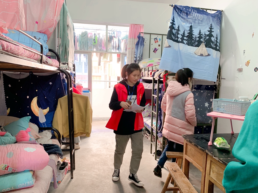 为进一步培养泾县二中留守儿童自我管理的能力,养成良好的行为习惯,使学生能自觉形成遵守校纪校规的良好风尚,我校特成立了留守儿童文明监督岗。文明监督员的同学上岗已近两周,在这两周中,他们轮流上岗,每天早晨、课间、中午和放学后,都会认真履行自己的职责。其主要职责是对在课间及放学后学生的不文明行为予以当面制止,做好记录,并及时与班主任老师或生活指导进行沟通;协助老师对班级及寝室的卫生、纪律进行监督、管理并定期对寝室卫生和内务整理进行打分评比,同时协助值日领导和班主任维持课间跑操、食堂就餐排队及用餐时的秩序。