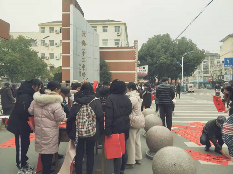 为了喜迎农历春节的到来,更好地弘扬民族传统文化,促进我校精神文明建设,元月14日上午,泾县二中书画协会十几位成员在校大门口开展了“迎新春 送春联”活动。