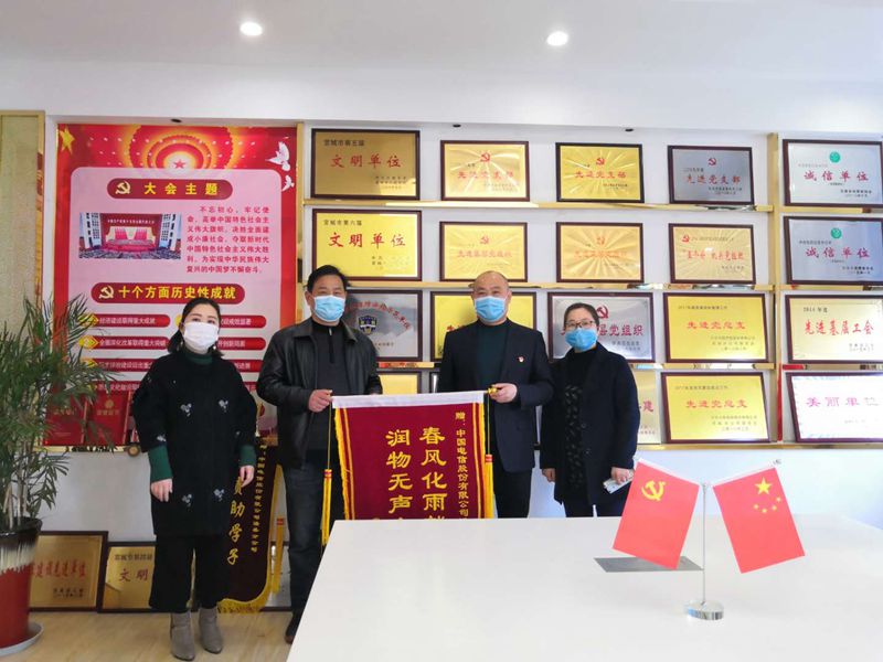 2020年3月19日上午,泾县二中校长徐宗保一行人来到了中国电信有限公司泾县分公司,将一面上书“春风化雨献爱心,润物无声育英才”的红底金字的锦旗送到了该公司,总经理左波代表公司全体爱心员工接收了我们泾县二中全体师生的感谢与敬意。
