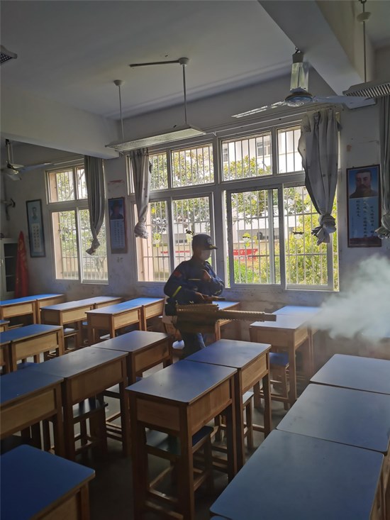为切实加强新冠肺炎疫情防控,坚决贯彻落实省、市、县教育和卫生部门的指示精神, 泾县二中积极开展爱国卫生大运动,加强对 校园全方位的清扫和消毒。为了让家长放 心、让社会满意,学校还特地邀请到宣城市 蓝天救援队进行专业消毒消杀工作。宣城市 蓝天救援队是一支专业的救援志愿队伍,他 们具有高超的专业技术和精密的设备,是武 汉新冠肺炎疫情中的逆行者,为武汉义务开 展了十五天的城市消毒工作。从武汉战场回 泾结束隔离后,他们又积极投身到无偿为校 园进行消毒工作中。4月3日下午在我校开展 的活动,赢得了社会各界的广泛赞誉。