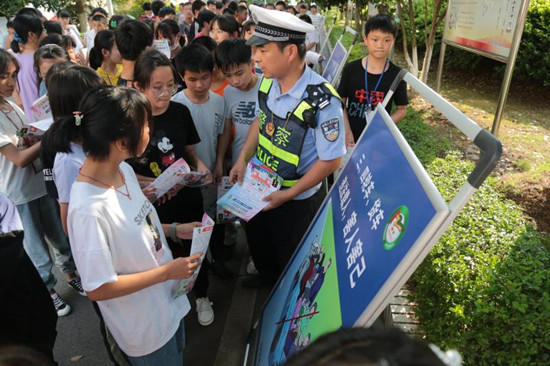 活动中,我校交通安全副校长卜建国结合交通宣传展板,为学生们讲解了交通信号、交通标志、标牌的含义,告知学生们自觉遵守交通法规、勿乘坐货运三轮车、严禁饮酒驾车等,增强同学们的交通安全意识。同时,重点讲解“一盔一带”的重要性,为同学们发放交通安全宣传资料,结合辖区身边的摩托车及电动自行车事故案例,讲解骑乘摩托车、电动车时必须佩戴头盔,尽量选择轻便舒适、安全系数高的头盔、不影响视线的头盔,驾驶、乘坐汽车时必须规范使用安全带,并强调对相关违法行为将依法惩处,让大家更加充分的认识到交通安全的重要性。