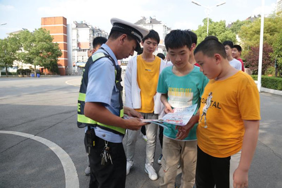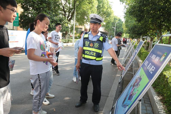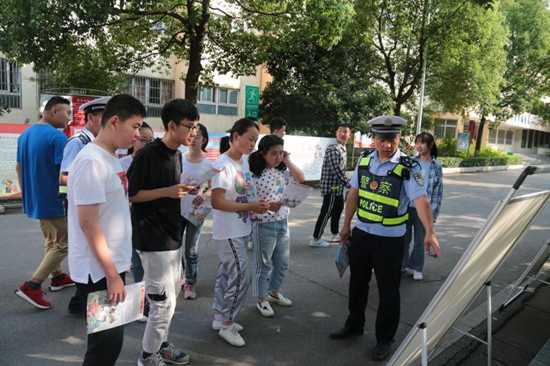适逢2020年6月1日起全国公安交警严查“一盔一带”,为提高我校学生交通安全意识,维护师生生命财产安全,我校特邀请泾县交警支队的民警来校开展“一盔一带”交通安全宣传活动。