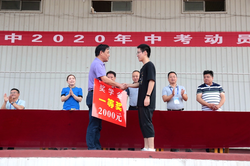 王松华副校长首先宣读了在本次“三县四校联考”中取得优异成绩的班级之星和年级之星名单。随后校领导给受表彰的学生颁发了奖学金。