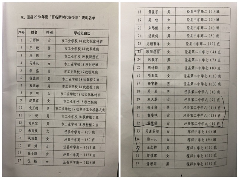 喜报!我校曹雯艳同学荣获泾县2020年度“百名新时代好少年”荣誉称号