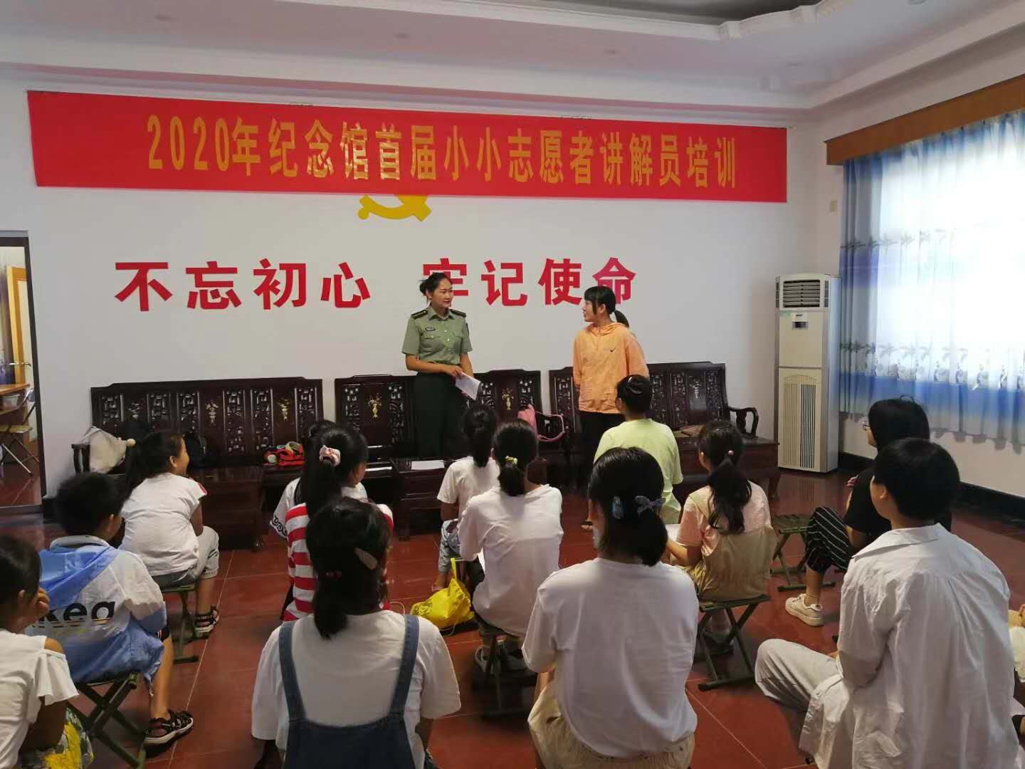 在培训过程中,两位小志愿者举手投足颇有专业讲解员的架势,这样的培训活动,不仅给予了孩子们锻炼的平台,又展现了云岭新四军纪念馆的宣教风范,弘扬了红色文化,让孩子们记住了那段在战场上、红旗下的流金岁月!