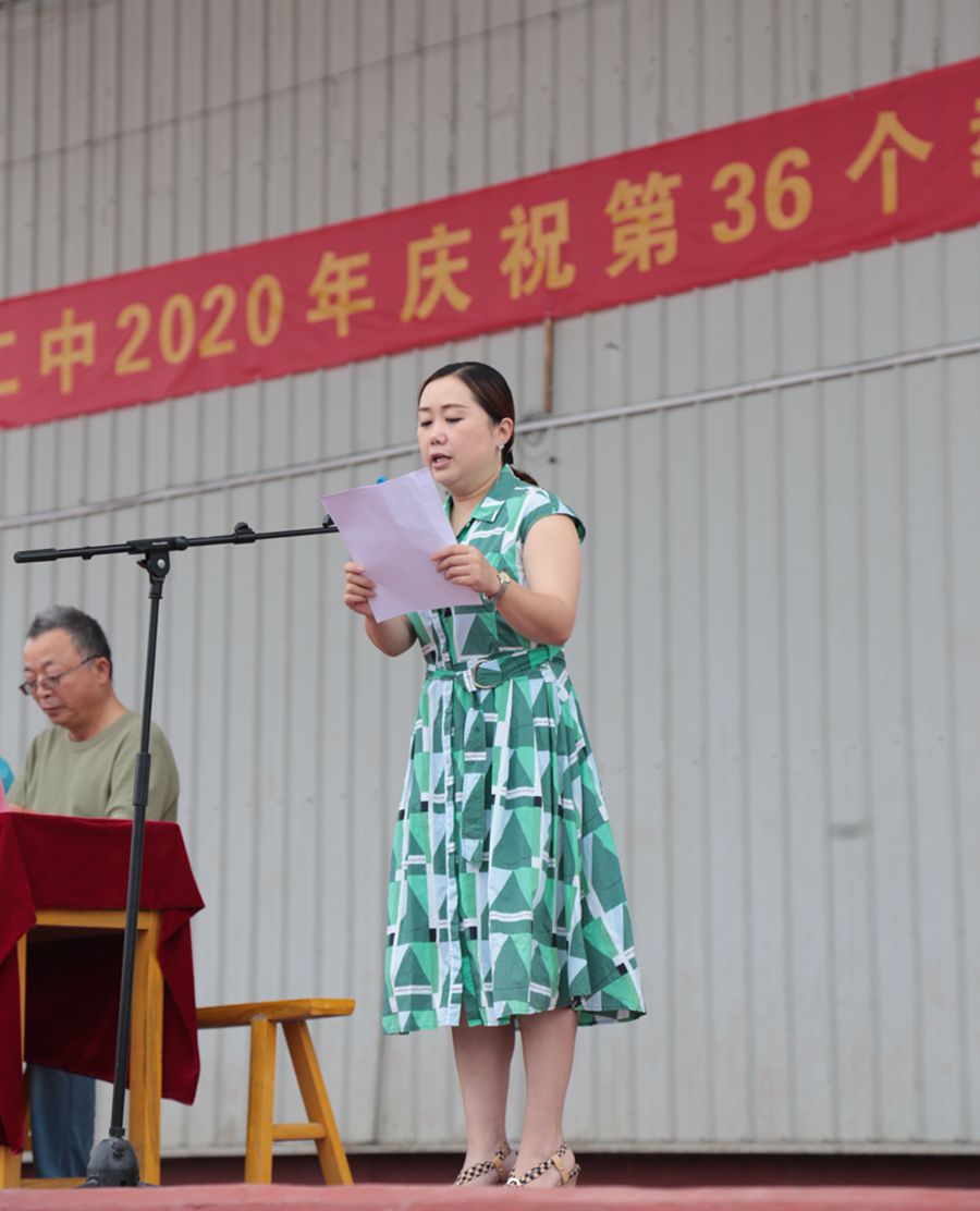 九(2)班文霄同学代表优秀学生在大会上发言,他向辛勤耕耘的老师们送上真挚的节日祝福,并呼吁全体学生扬起理想的风帆,趁着美好的时光,播种希望、放飞梦想、踏上征程,以梦为马,不负韶华;优秀教师熊晓红代表受表彰教师发言,她与全体师生分享了从教20年来的工作体会与感悟,抒发了作为教师的职业自豪感,强调了作为教师的责任感,她号召全体师生在各自的岗位上齐心协力,奋发进取,砥砺前行,再谱二中新华章。