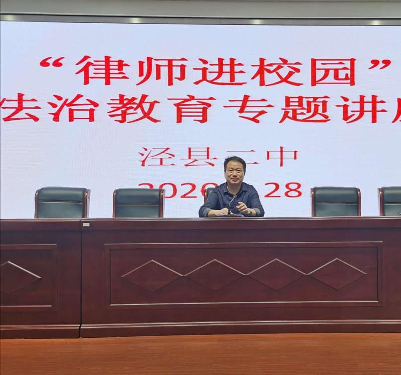 9月28日下午,我校邀请泾川镇律师事务所曹静律师来我校开展法治教育专题讲座,约300名学生参加了讲座。讲座由郭世东副校长主持。