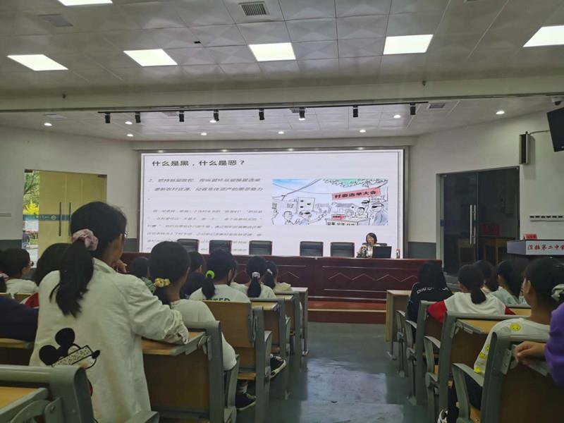 在讲座中,曹静律师结合当前形势下的扫黑除恶,以大量生动鲜活的现实案例,向学生深入浅出的阐述了什么是“黑”,什么是“恶”,尤其针对校园中“黑恶”——校园暴力和校园欺凌中所涉及的法律问题及预防青少年犯罪的基本常识进行了重点阐述。让同学们认识到校园欺凌不仅给社会带来危害,也给青少年健康带来消极影响,而且施暴者要承担相应的法律责任。同时,她进一步向同学们讲解了对被施暴者的救济方法,指导同学们学会用法律的手段保护自己。同时曹律师还以“远离性侵 健康成长”为主题系统地讲解了中学生应当如何预防性侵以及面对性侵该怎么做。讲座引用大量鲜活事例进行剖析,深入浅出,以案释法,以法论事,给同学们上了一堂生动的法治教育课。