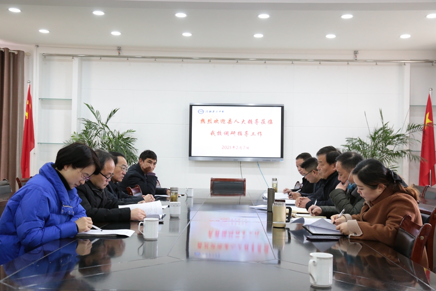 2月7日上午,县人大常委会主任左银海、副主任王永生等一行在县教体工委委员、教体局副局长曹国庭陪同下莅临我校指导工作。