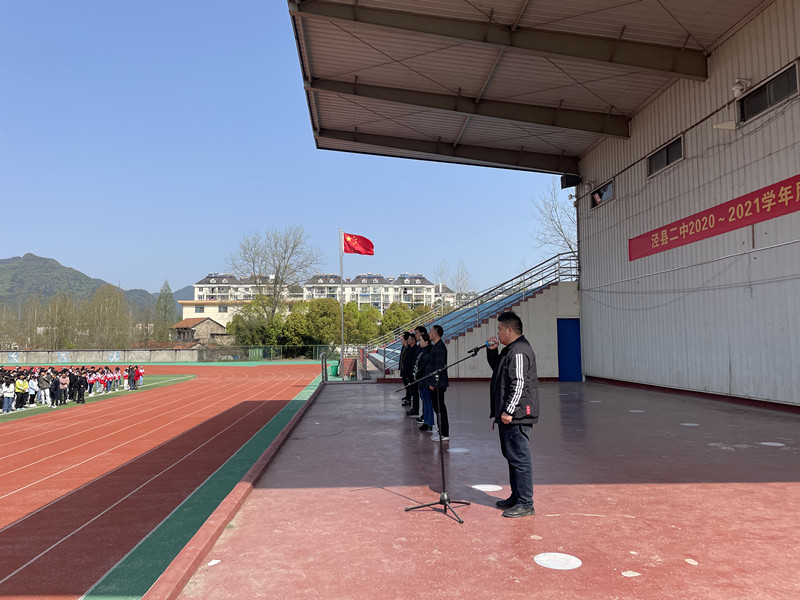 春风和煦,万木吐绿。2021年3月29日上午,泾县第二中学全体师生及泾县实验小学六年级师生齐聚校运动场,举行本周升旗仪式。