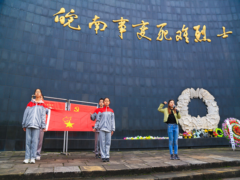 全体师生怀着无比崇敬的心情,走进皖南事变烈士陵园,通过敬献花圈、向纪念碑鞠躬致敬,寄托对革命先烈的哀思。