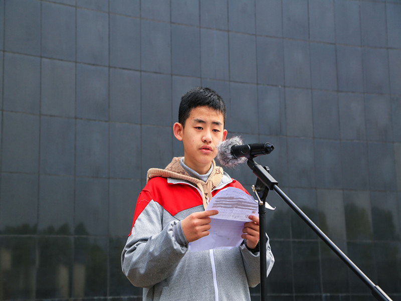 来自七年级8班的陶涵同学作为学生代表发言,他代表全体学生表达了对革命先烈的缅怀之情,表示要报效祖国、做好共产主义事业接班人的决心。