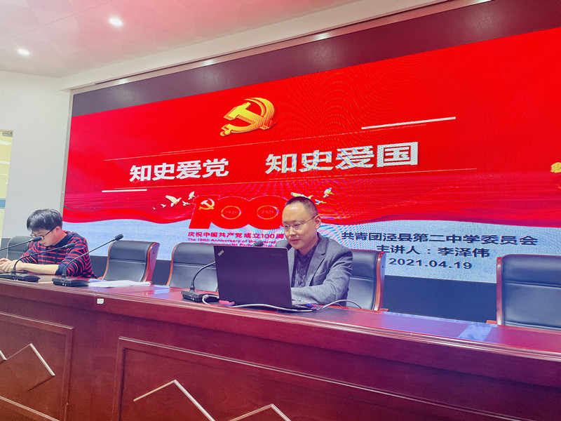 今年适逢中共百年华诞,在全党范围内、在全团范围内开展党史学习教育,意义重大。为做好我校共青团系统党史学习教育工作,2021年4月19日下午,我校团委组织校内各团支部在阶梯教室开展“学党史、强信念、跟党走”主题团课学习教育活动。本次团课由学校党员代表、办公室副主任李泽伟老师主讲,校团委书记曹阳老师主持,校团委副书记徐盛昊老师与会。