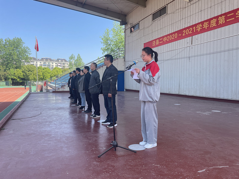 芳菲四月,如诗如画。2021年4月19日上午,泾县第二中学全体师生及泾县实验小学六年级师生齐聚校运动场,举行本周升旗仪式。