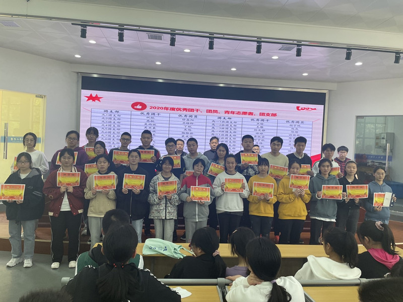 活动在回顾中国共产党建党100周年的短片《革命理想高于天》中拉开序幕,通过观看短片,让新老团员了解到,没有一大批具有坚定共产主义理想的中华儿女,就没有中国共产党,也就没有新中国,更没有今天我国的发展进步。党哺育了成千上万的优秀儿女,也曾牺牲了无数的优秀儿女,才使日月换新天。展望明天,新的世界是祖国青年人的的世界,青年人要勇担祖国重托,把自己的人生理想与祖国、与时代紧密联系在一起,做一名新时代合格的社会主义接班人和建设者。校团委副书记徐盛昊对2020年度校团委工作进行简短汇报,徐宗保校长、王松华副校长、郭世东副校长为2020年度优秀团支部、团干、团员、青年志愿者进行表彰并颁奖。