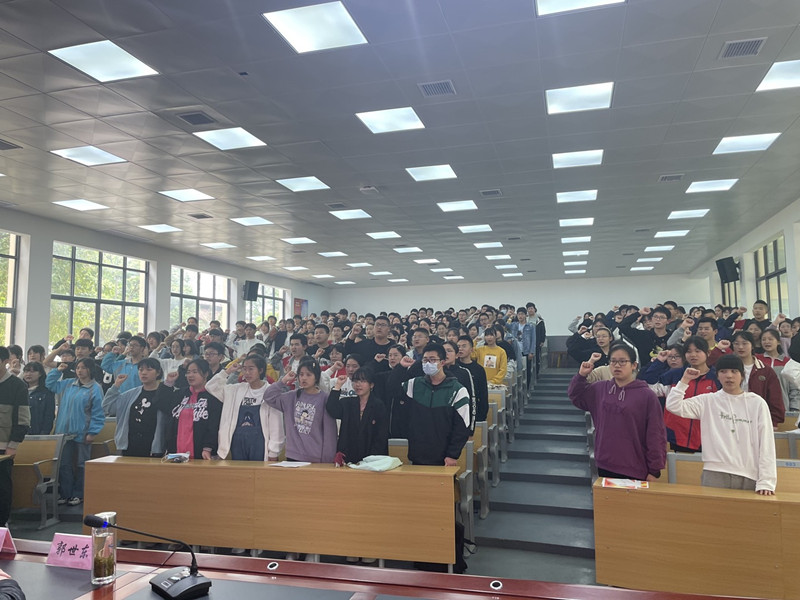 为庆祝中国共产党建立100周年、纪念五四运动102周年暨建团99周年,做好我校共青团系统党史学习教育工作,进一步加强我校团员意识教育,深化团的自身建设,4月28日,在五四来临之际,我校团委在校阶梯教室开展“青春心向党 建功新时代”五四主题团日活动暨2020-2021年度第二学期新团员入团仪式。校党委书记、校长徐宗保,校党委委员、副校长王松华,校党委委员、副校长郭世东,校团委书记曹阳、校团委副书记徐盛昊、储小军、卫昱,各班级团支部成员及新入团团员共200余人与会。会议由校团委书记曹阳主持。
