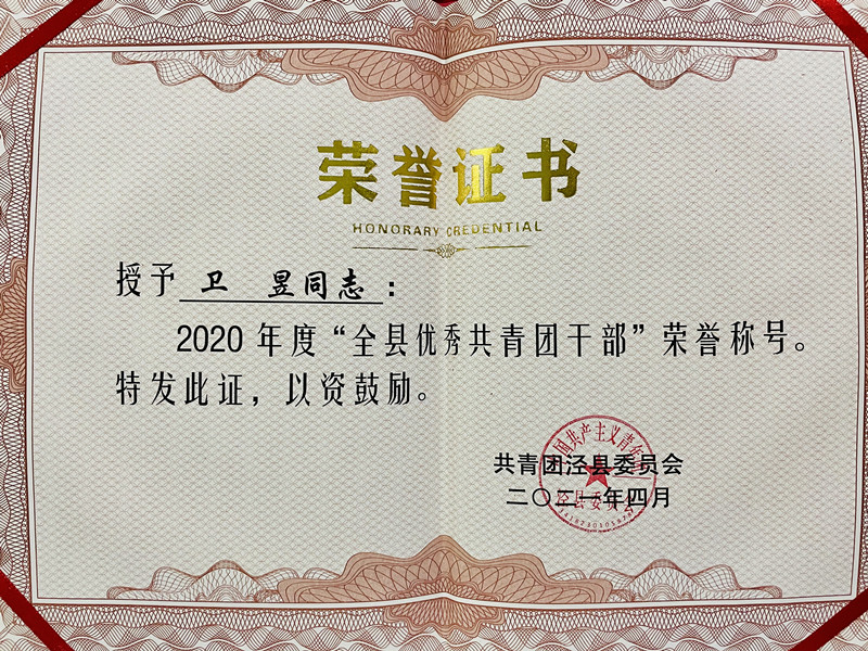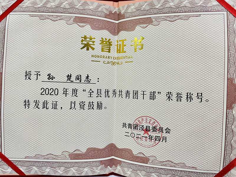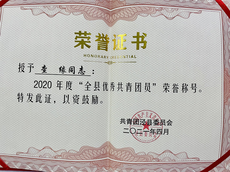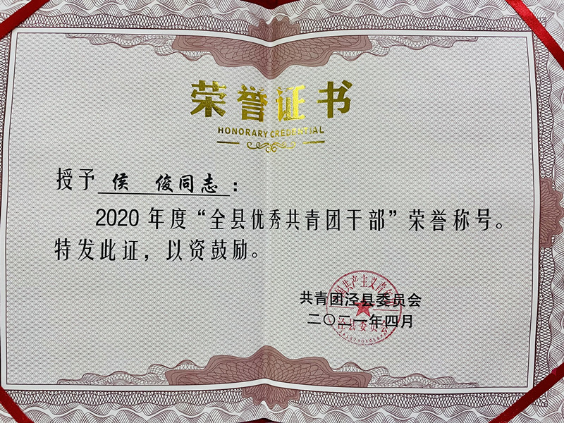 活动中对2020年度泾县“五四红旗团委(团支部)”、“优秀团干部(团员)”等获奖集体和个人进行表彰。我校团委喜获“2020年全县五四红旗团委”荣誉称号;卫昱老师、孙楚老师、侯俊老师获得“全县优秀共青团干部”称号。2019级3班团支部、2020级4班团支部被授予“全县五四红旗团支部”;查缘同学获“全县优秀共青团员”称号。2020级4班团支部学生周怡雯作为我校获奖代表上台领奖。
