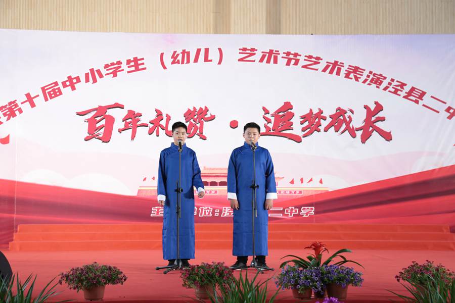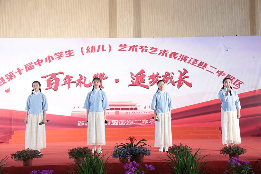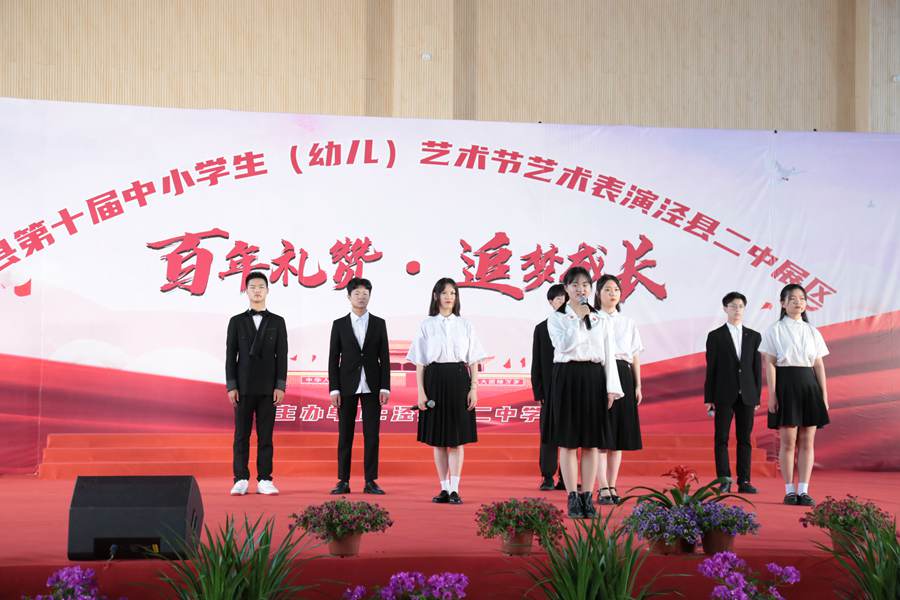 本届艺术节以“百年礼赞·追梦成长”为主题,参演的十六个节目形式多样,各具特色,包含大合唱、朗诵、戏曲、课本剧、相声等。文艺表演在大合唱《泾县二中的日子》中拉开帷幕,原创节目小合唱《千年一梦》、二胡独奏《红军哥哥回来了》、朗诵《少年中国说》、女生四重唱《我爱你,中国》将演出推向高潮,最后在八(4)班同学的大合唱《新四军军歌》、《国家》中落下帷幕,同学们的精彩表演赢得了在场师生观众的阵阵掌声。