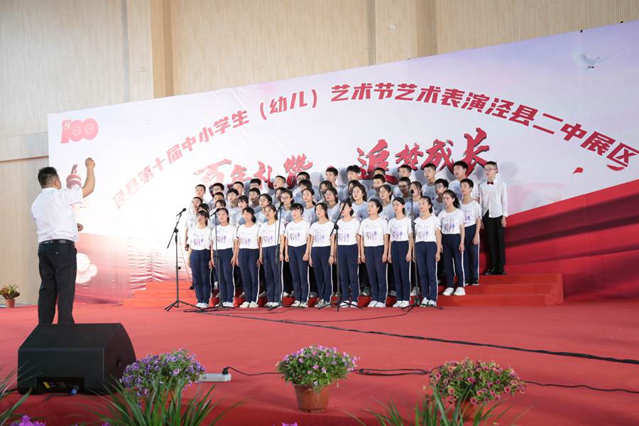 为深入贯彻党的十九届五中全会和习近平总书记关于教育的重要论述精神,庆祝中国共产党成立100周年,展示我县中小学艺术教育成果,5月11日,泾县第十届中小学生(幼儿)艺术节艺术表演泾县二中展区成功展演!县教体工委委员、副局长卫建平,县教体局基教股股长王群,安徽省音乐家协会会员、安徽省合唱协会理事、云岭合唱协会会长、泾县中学退休音乐教师朱丹,安徽省摄影家协会会员、宣城市骨干教师、泾川幼儿园教务主任朱薇等嘉宾出席演出。我校党委书记、校长徐宗保及党委班子成员、中层干部、全体非毕业班同学观看了演出。