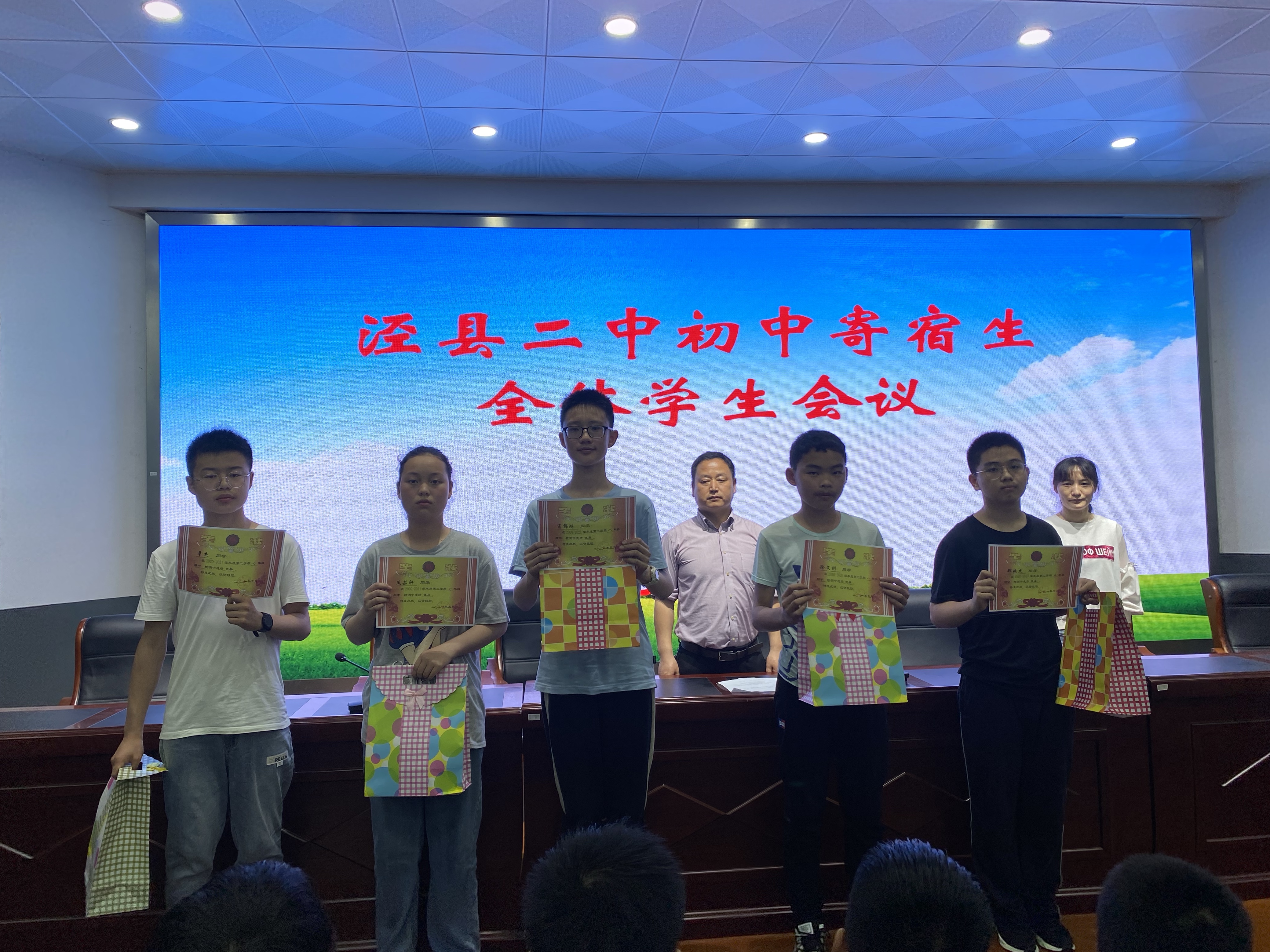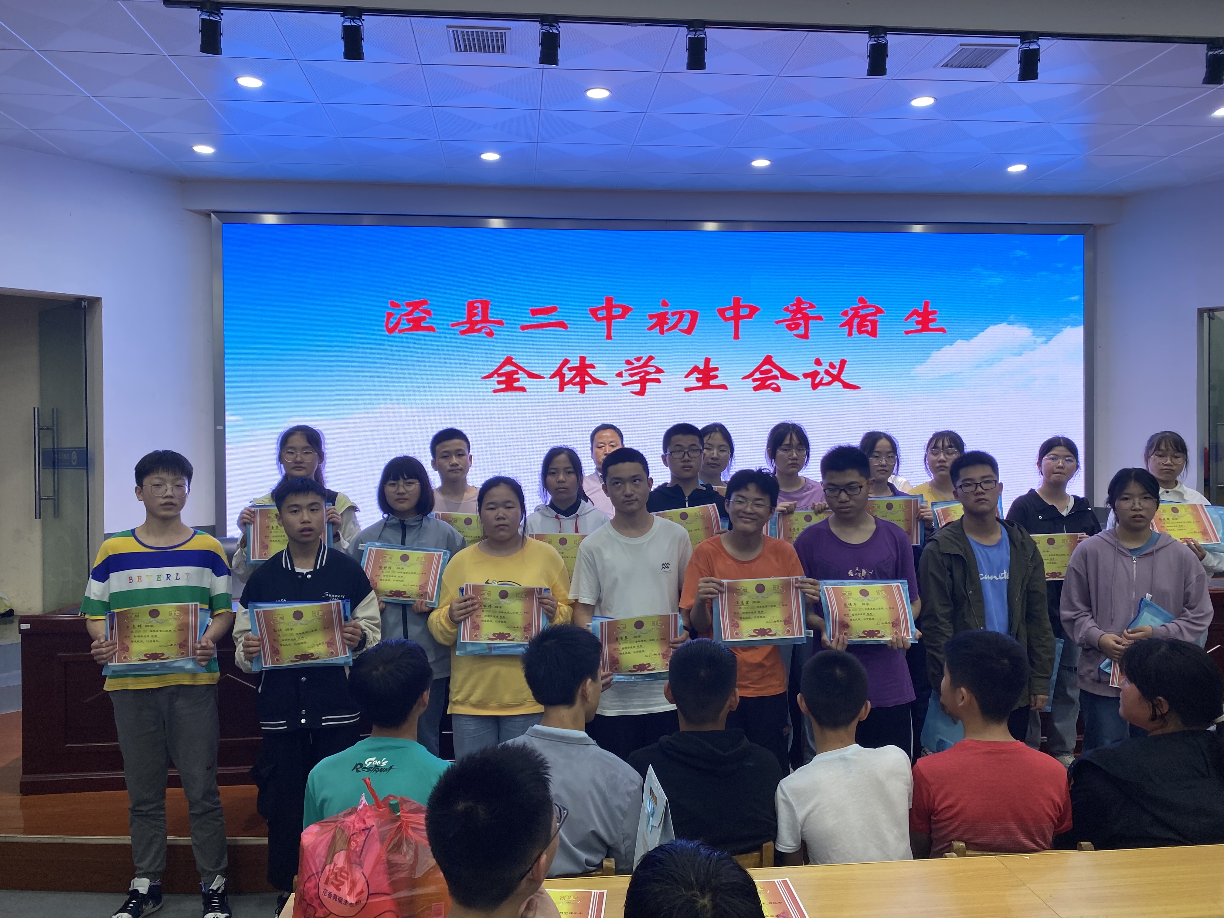 最后,校党委委员、留守儿童服务中心王洁主任对本学年期中检测取得优秀成绩的学生进行表彰并对近期初中寄宿班学习和生活情况进行了通报、教育。