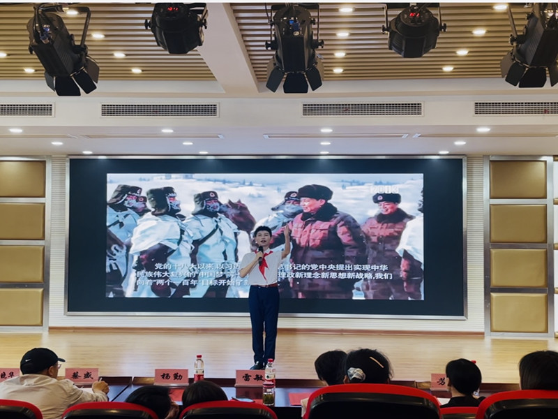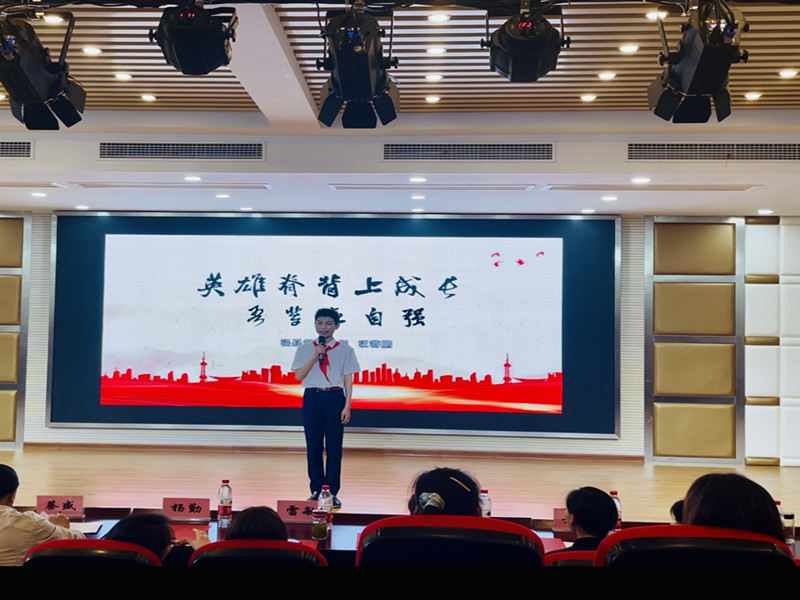 我校曹阳老师辅导的八(1)班学生汪蒋鹏参加了此次比赛。该同学演讲的题目为《英雄脊背上成长 吾辈应自强》,他以昂扬的激情、坚定的言语,深情回顾党史、新中国史、改革开放史、社会主义发展史,号召青少年学史明理、学史增信、学史崇德、学史力行,争做党的红孩子。